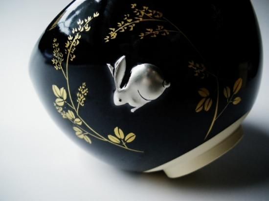 浮彫の兎はプラチナが施されていて黒釉にとてもよく映えています。