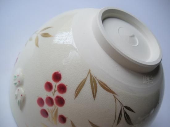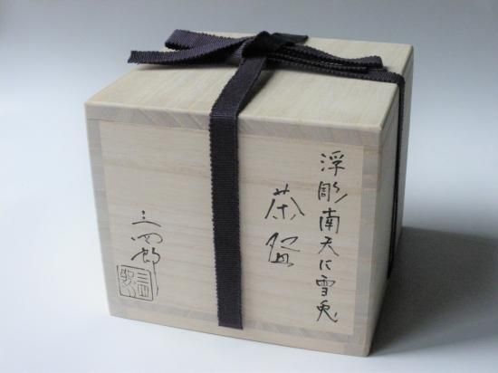浮彫 南天に雪兎茶碗 (共箱)