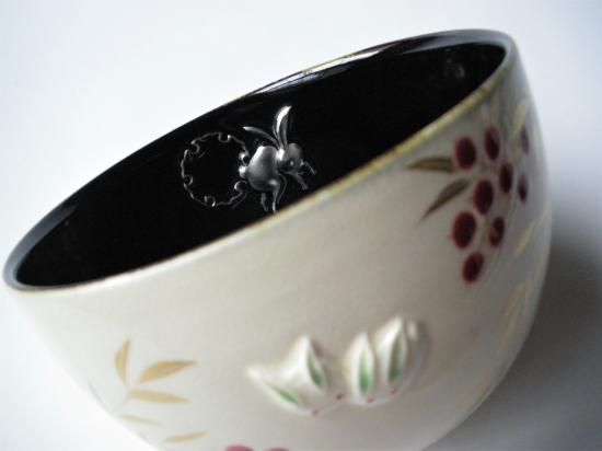 見込みは黒釉を全体に掛けてあり浮彫された雪輪と兎にプラチナが施され上品な輝きを放っています。