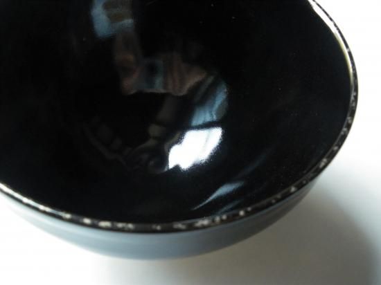 形はやさしいすっぽん口をした天目形で、よく溶けた光沢のある黒釉によく合っています。