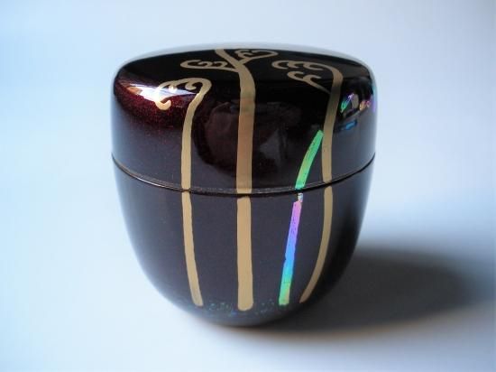 溜塗 早蕨蒔絵中棗 (紙箱)