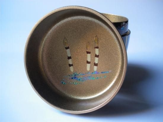 濃い溜塗でキラキラと光る砂子になっていて、見込みは金砂子が施されています。