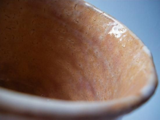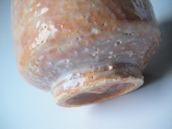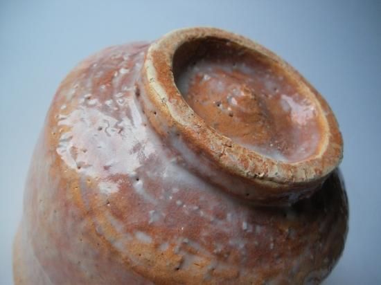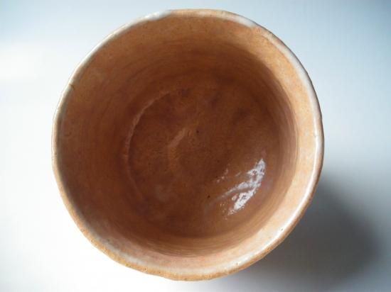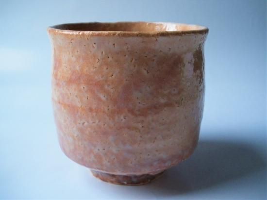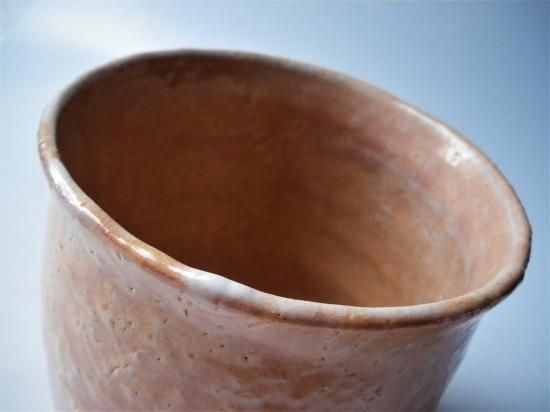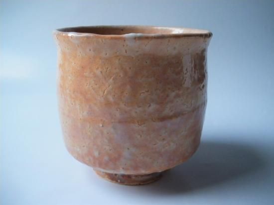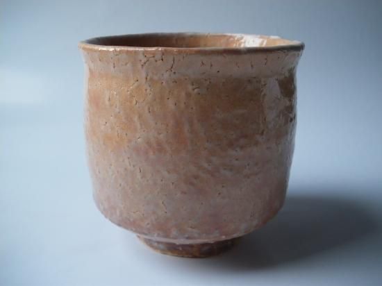 枇杷色やさしい色合いと、ざっくりとした柔らかな土味で素朴で暖かみのある筒茶碗です。