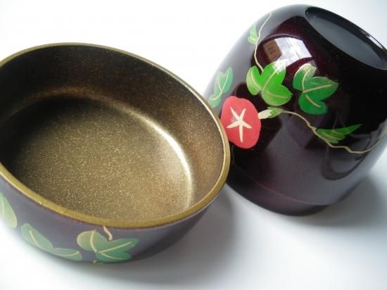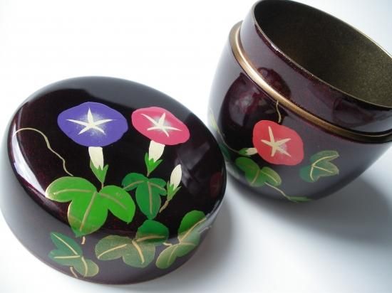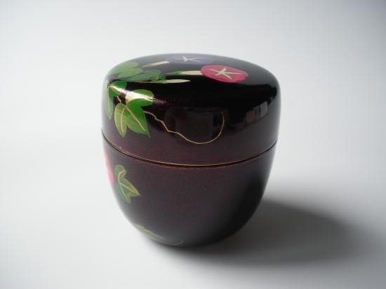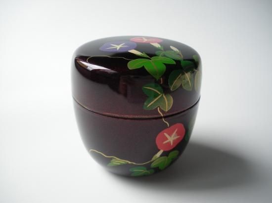 溜塗 朝顔蒔絵中棗 (紙箱)