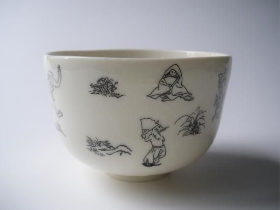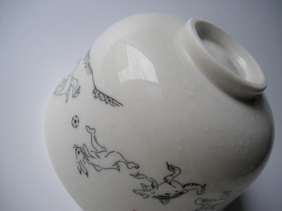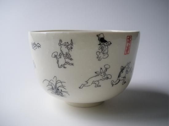 日本最古の漫画と言われている鳥獣戯画を一部分オリジナルの絵柄で造られた楽しい茶碗です。