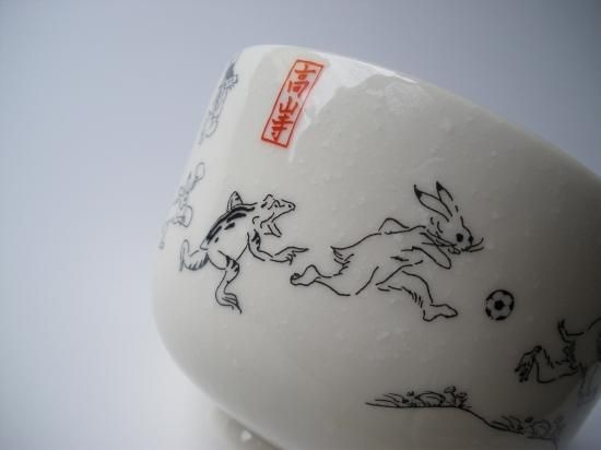 サッカー 鳥獣戯画茶碗 (紙箱)