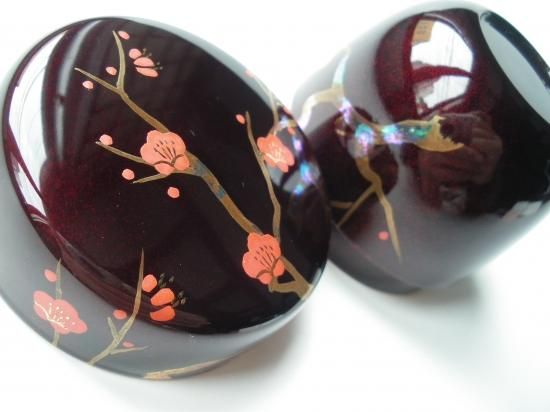 濃い溜色で少し白檀塗のような落ち着いた輝きと深みのある色合いです。