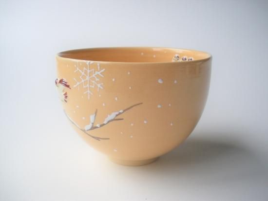 雪がうっすらと積もる木、しんしんと降る雪と雪の結晶などとても情緒豊かな絵付けでセンスにあふれています。