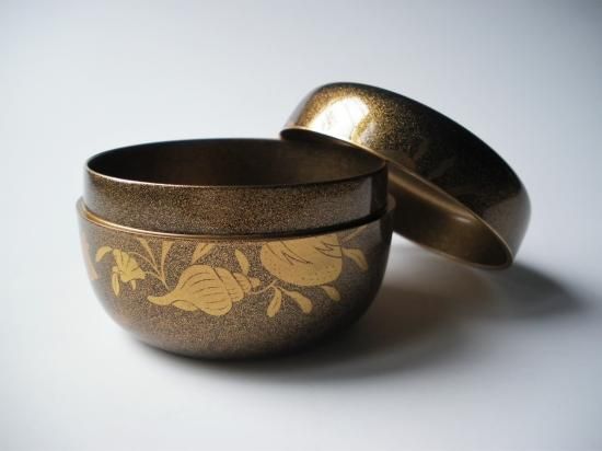 全体を梨地風に仕上げた豪華な雰囲気で様々な貝がバランスよく描かれています。