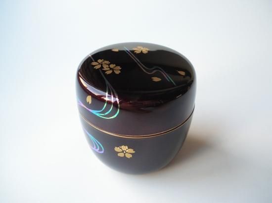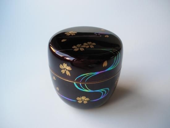 溜塗 桜流水蒔絵中棗 (紙箱)