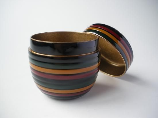 落ち着いた色合いの独楽塗で、見込みは金砂子になっています。