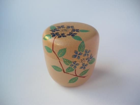 白漆叩塗 紫陽花蒔絵中棗 (共箱)