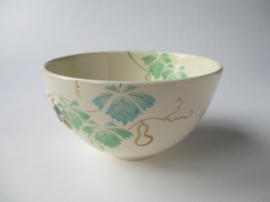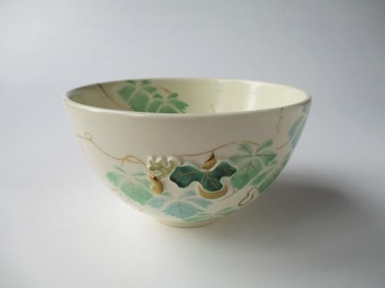 すっきりとした構図で涼しげで優しい色合いで六瓢と葉っぱが描かれ白い肌にとても映え爽やかです。