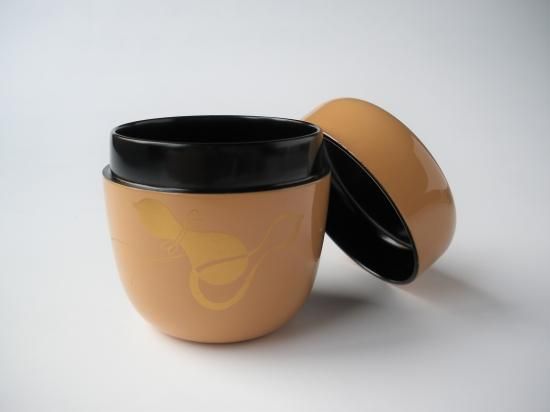 白漆の優しい色合いに上品な6つの瓢箪が蒔絵されています。