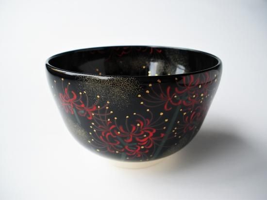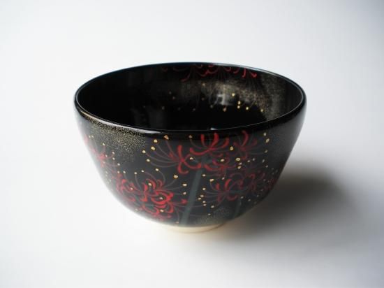 黒仁清 彼岸花絵茶碗 (紙箱)