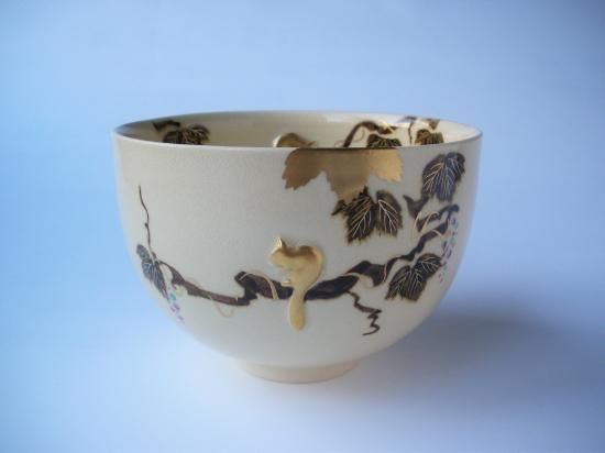 浮彫 葡萄に栗鼠茶碗 (共箱)