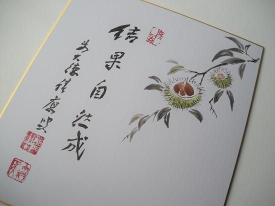 色紙 栗画賛 結果自然成 (畳紙)