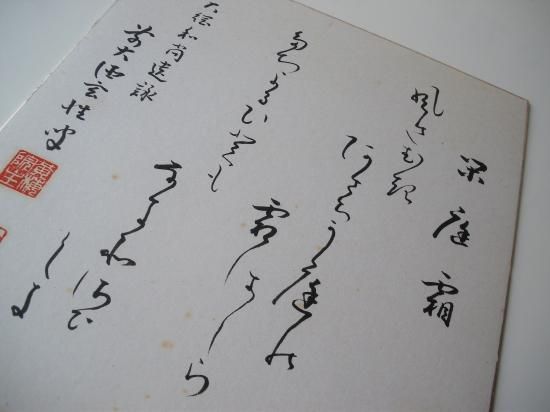 大徳寺黄梅院の前住職・宮西玄性住職の色紙で大綱和尚遺詠が書かれています。