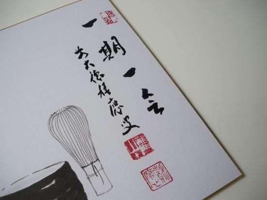 色紙 茶碗と茶筅画賛 一期一会 (畳紙)
