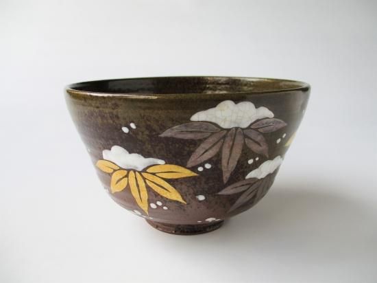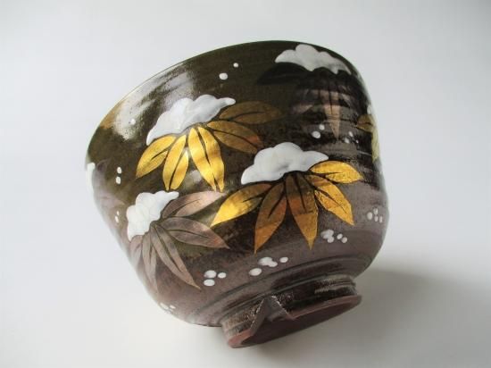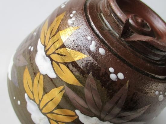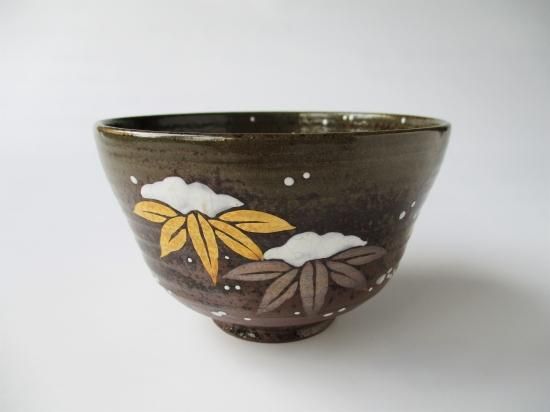 金銀で描かれた笹に白釉で描かれた雪がとても映えています。