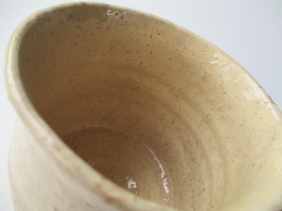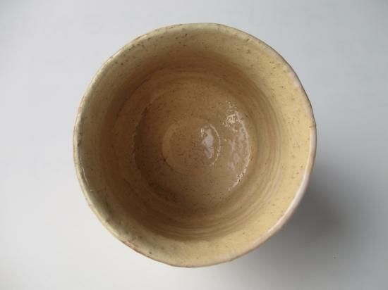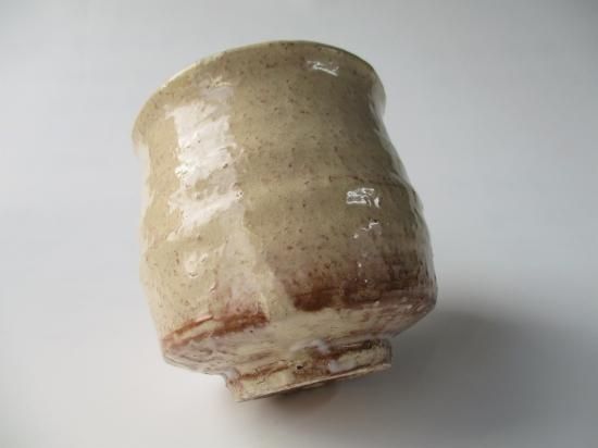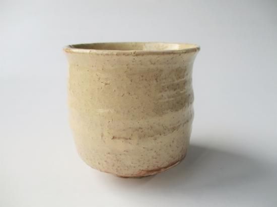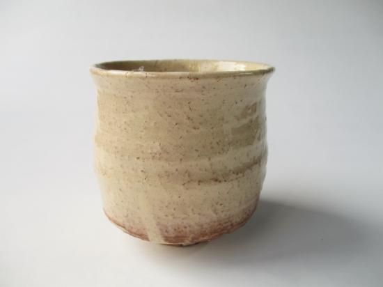 やや白っぽい枇杷色で、ざっくりとした柔らかな土味の暖かみのある筒茶碗です。