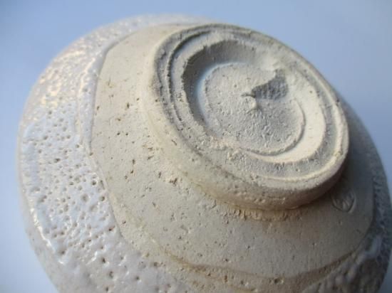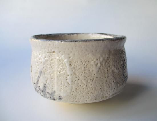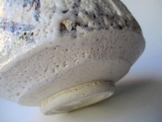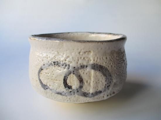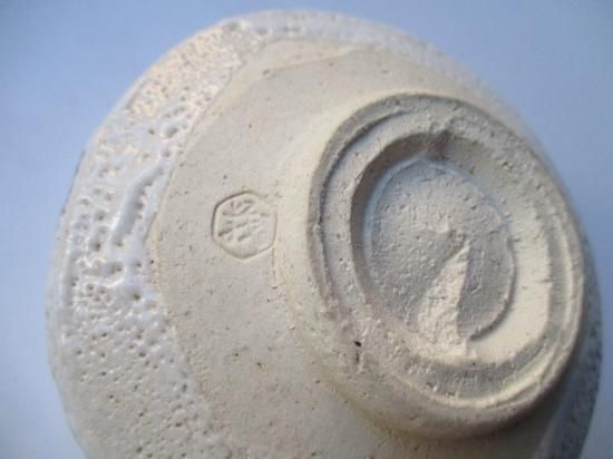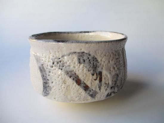 堂々とした力強いフォルム、たっぷりと掛けられた長石釉の味わいのある景色、ざっくりと描かれた絵付け、作者の作品らしさが現れた絵志野茶碗です。