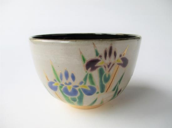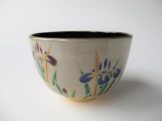 色絵 内黒釉 菖蒲茶碗 (紙箱)
