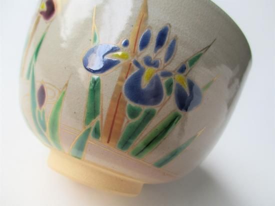 すっきりとした構図で菖蒲が描かれていて落ち着いた雰囲気の茶碗です。