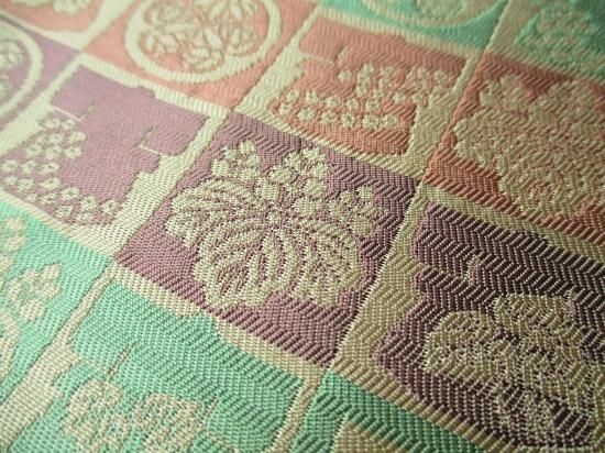 三姉妹の嫁ぎ先の家紋を意匠化し、西陣にて製織いたしました。 栞より原文