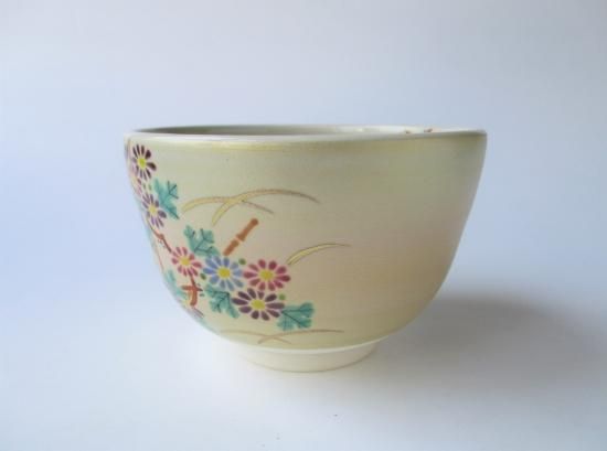 小振りな菊と籬がかかれた味わいのある茶碗に仕上がっています。