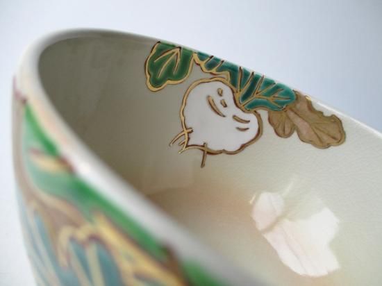 はんなりとした御本の景色があらわれた生地に立派な白蕪が描かれています。