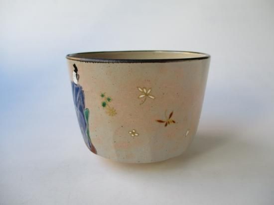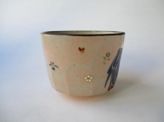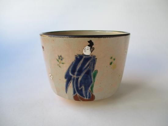 御本の景色がはんなりと現れた温かみのある茶碗で、正面には万葉集の代表的歌人であり歌聖とも称される柿本人麻呂が描かれています。
