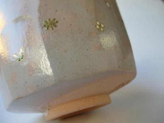 巧みな箆使いで側面を面取りしてある半筒形のフォルムです。