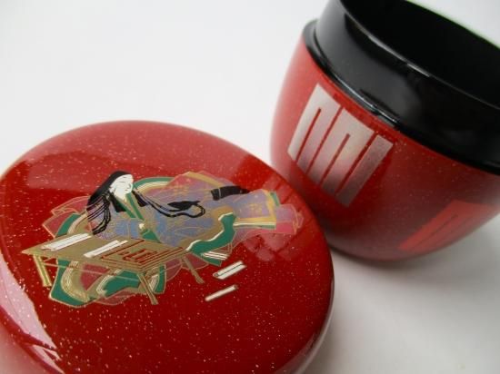 朱キララ塗 紫式部蒔絵中棗 (紙箱)