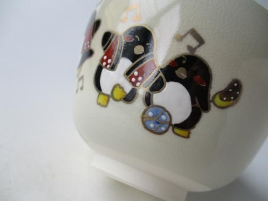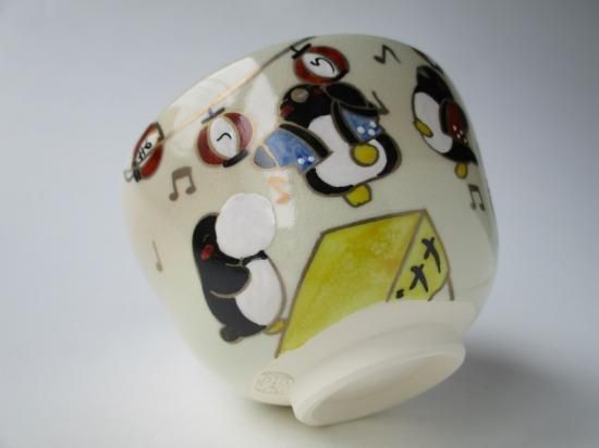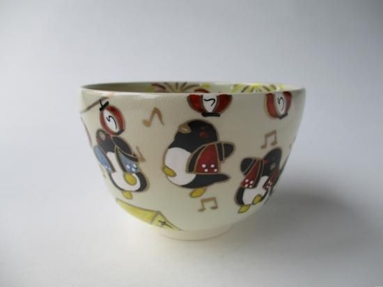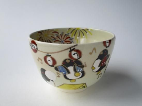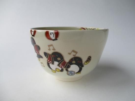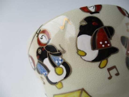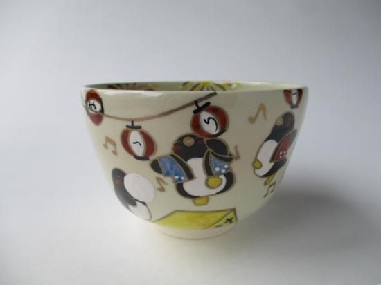色絵 ペンギンの夏祭り茶碗 (紙箱)