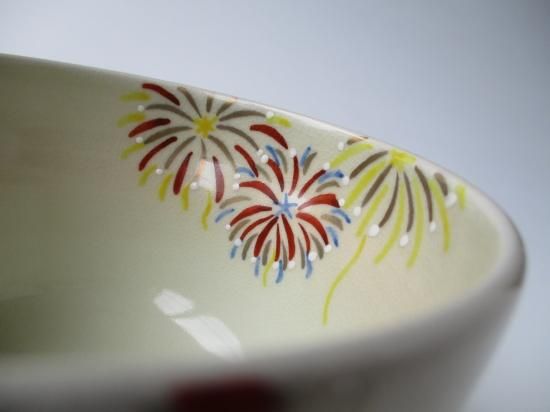 綿菓子やチョコバナナを食べたり、水ヨーヨーを手にしたり、楽しそうに踊ったりと、それぞれに夏祭りを楽しんでいるペンギン達が描かれた可愛らしい茶碗です。