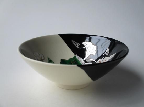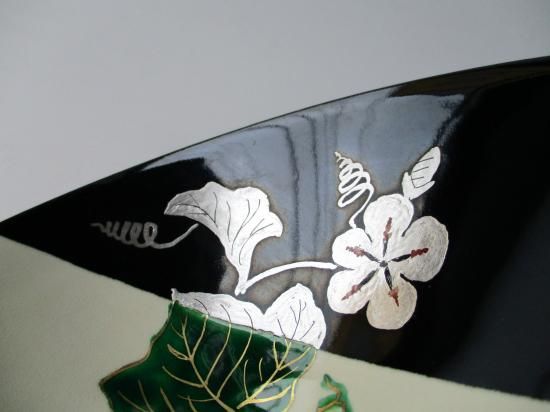黒の部分には銀を使って描いており雄しべ・雌しべ部分のみ赤を使ってあるところがアクセントとなっています。