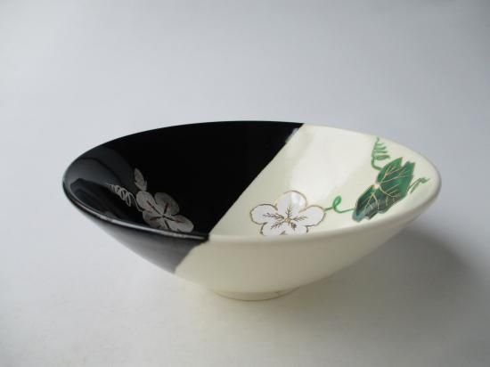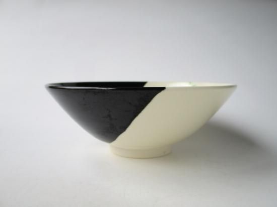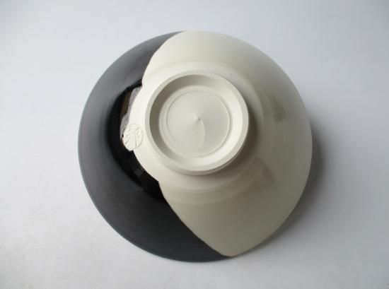 黒釉を三日月のように施してあり黒と白の対比が美しい平茶碗です。