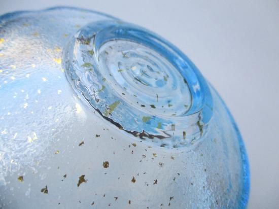 側面は摺りガラスのようなザラッとした肌触りに仕上げてあり青いマーブル調の流し文様が流水のようで涼しげな雰囲気を醸し出しています。
