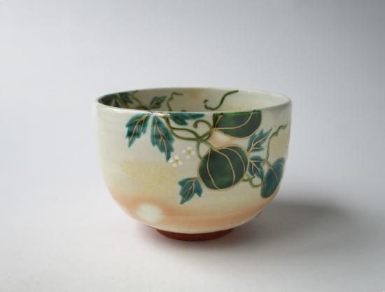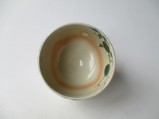 小砂交じりのザックリとした味わいの土に粉引釉が掛けられ淡い御本の景色が現れている少し小ぶりな茶碗です。
