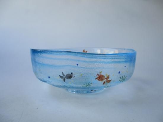 冷茶用 ガラス馬盥茶碗 金魚 (紙箱)
