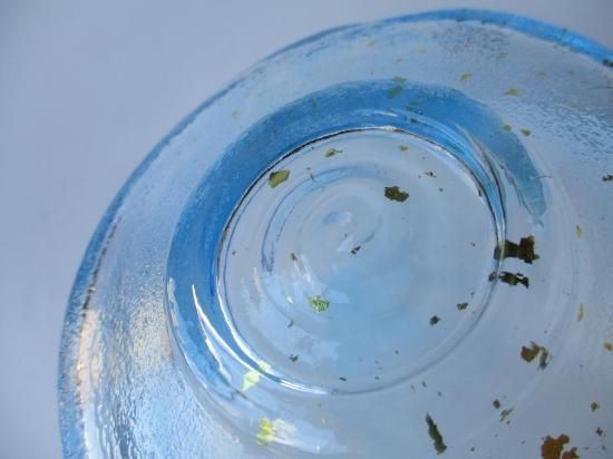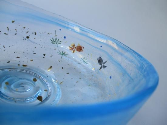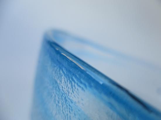 側面は摺りガラスのようなザラッとした肌触りに仕上げてあり青いマーブル調の流し文様が流水のようで涼しげな雰囲気を醸し出しています。