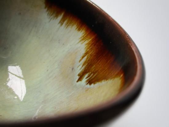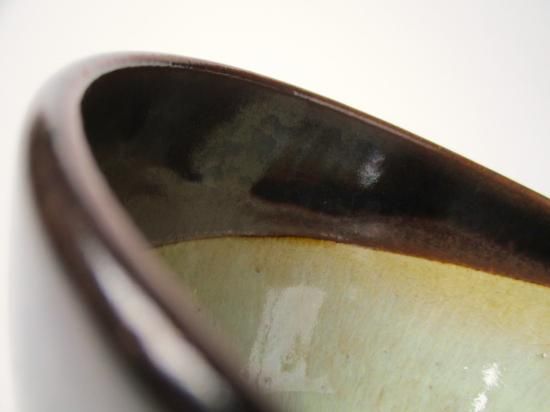 釉薬が掛け分けされていて、流れ落ちた景色がとても味わいがあります。