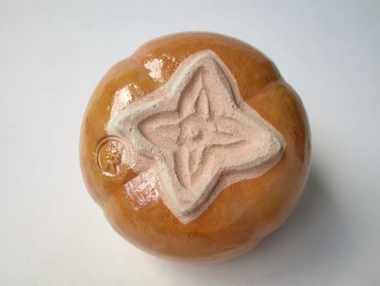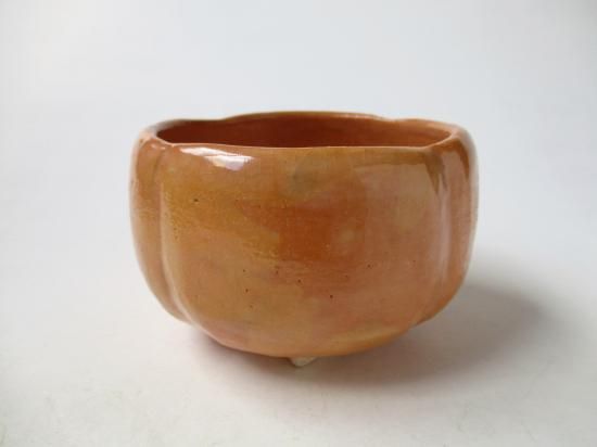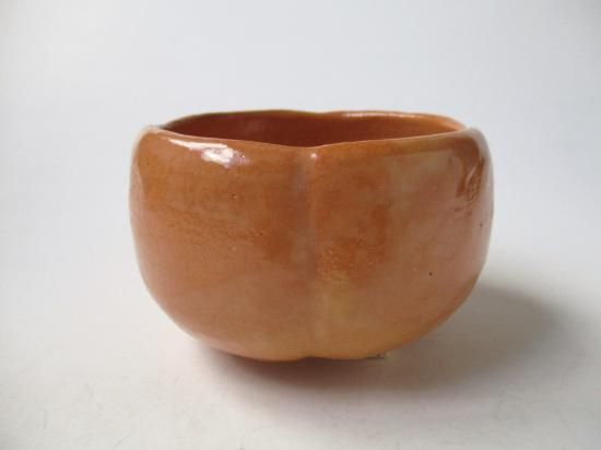 柔らかな丸みを帯びたフォルムの側面に四等分の箆目を入れて柿のようなイメージに仕上げられ、釉薬もムラが出るように刷毛で塗ったりと工夫をしておられます。