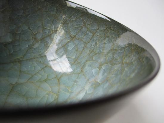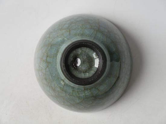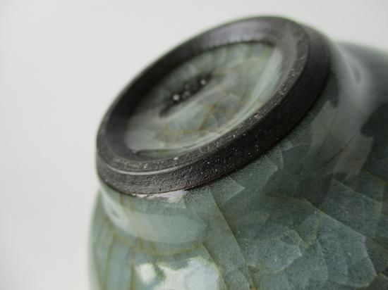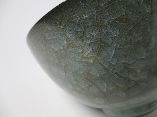 本作品はいわゆる氷裂紋の茶碗であり、たっぷりと掛けられた釉薬が無数の貫入が入り氷がひび割れたような景色となっています。