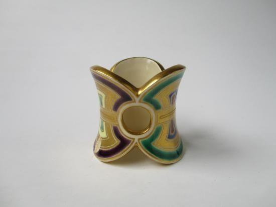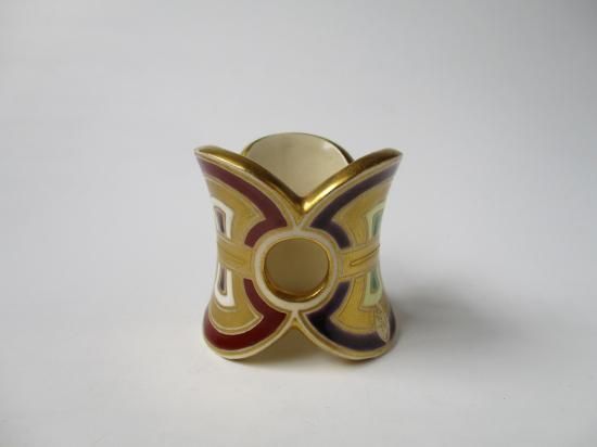 宝尽くしの文様にもある分銅を3つ繋ぎ合わせた形をしたデザイン性の高い蓋置です。